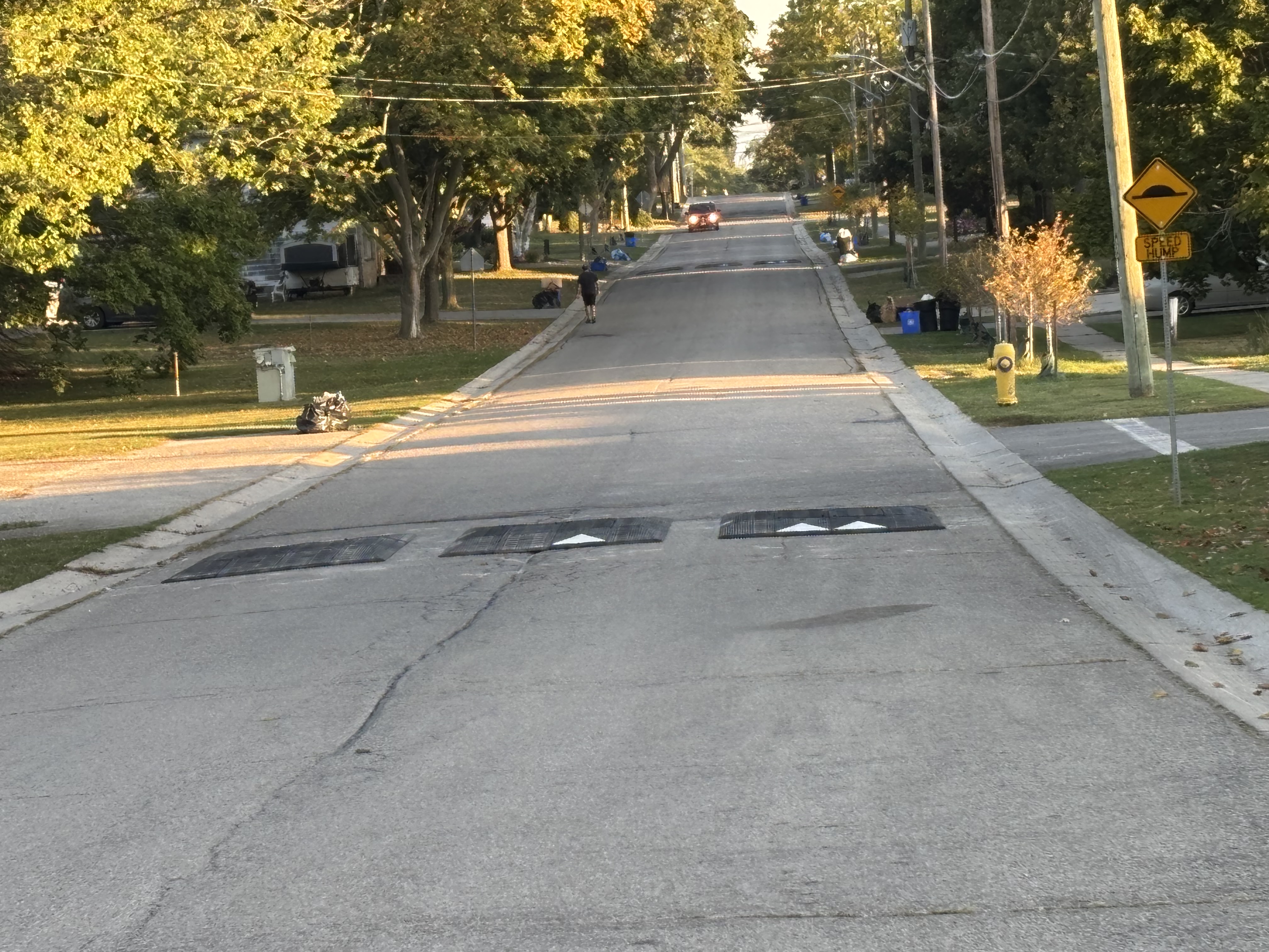 Speed humps are raised sections of the road that typically span the full width of the road.