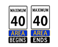 Neighbourhood speed areas are designated residential zones with a uniform speed limit of 40 km/h, marked by gateway signage. Gateway speed limit signage is installed at all entry and exit points along bordering main roads.